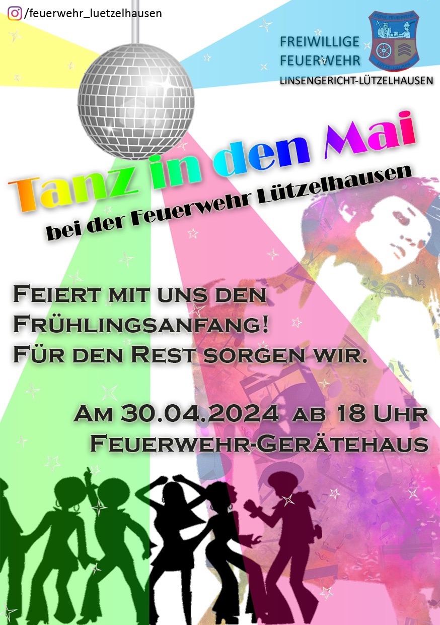 Am Dienstag den 30.04.2024 veranstaltet die Feuerwehr Lützelhausen einen Tanz in den Mai. Beginn ist ab 18:00 Uhr am Feuerwehrhaus. Für Essen und Trinken ist gesorgt. Wir freuen uns auf euren Besuch.